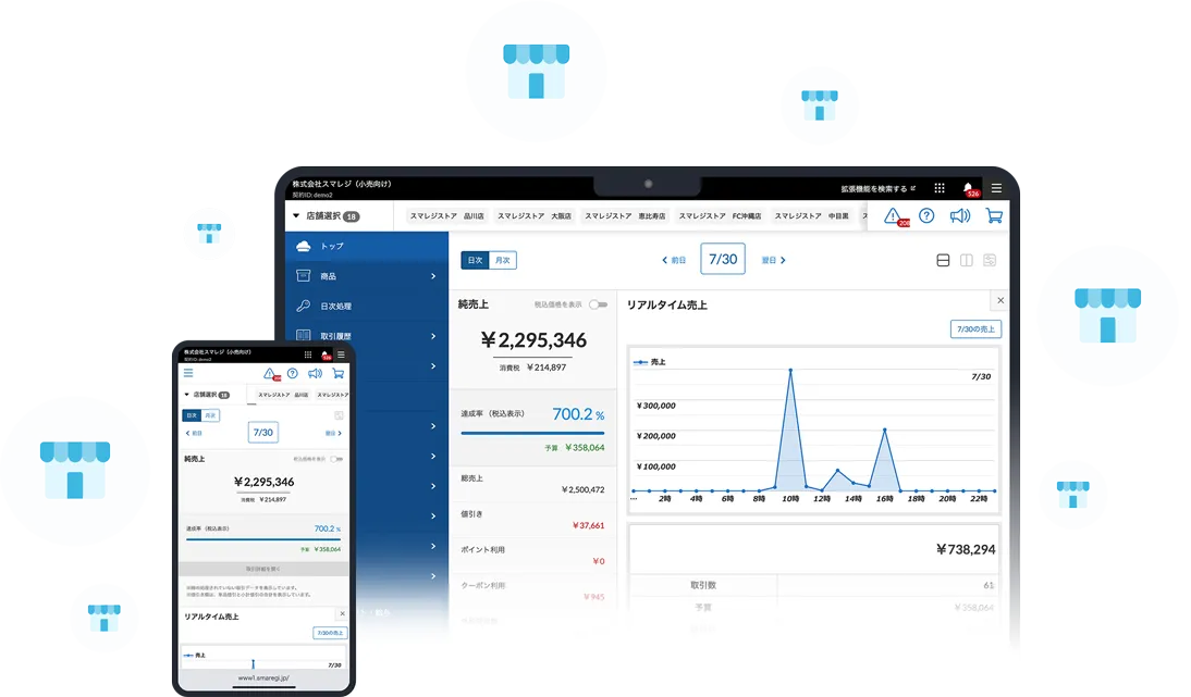 スマレジは、全国規模で展開する店舗を強力にサポートします。トラブル発生時には、